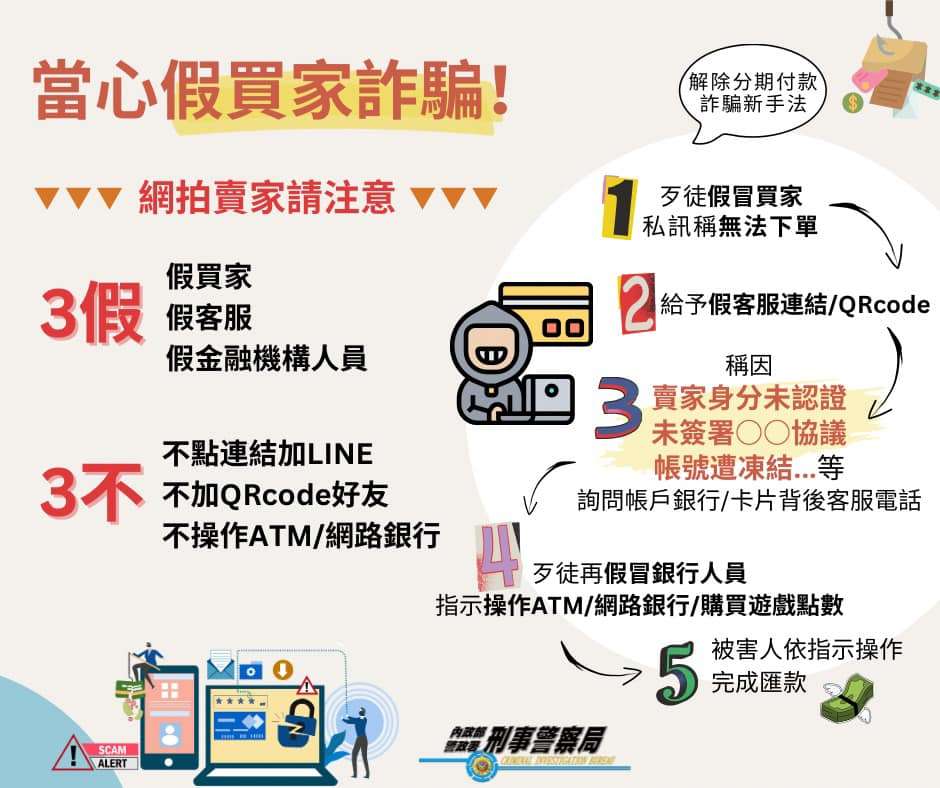 一、傳統「解除分期付款」詐騙手法,多為購物平台會員資料 遭駭客入侵外洩,導致民眾接獲詐騙電話,再以「設定成 高級會員」需扣繳會費、系統出錯「訂成團體票券」、「誤刷信用卡」需辦理退費等理由,假冒銀行客服逐步誘 騙民眾操作網路銀行或ATM解除設定,實則卻是使民眾利用 匯款功能將款項轉出至詐騙集團指定的人頭帳戶;然此類手法出現變化,詐騙集團原鎖定買家行騙,近期卻假冒買家、購物平臺及銀行客服人員,鎖定蝦皮或旋轉拍賣賣家行騙。
