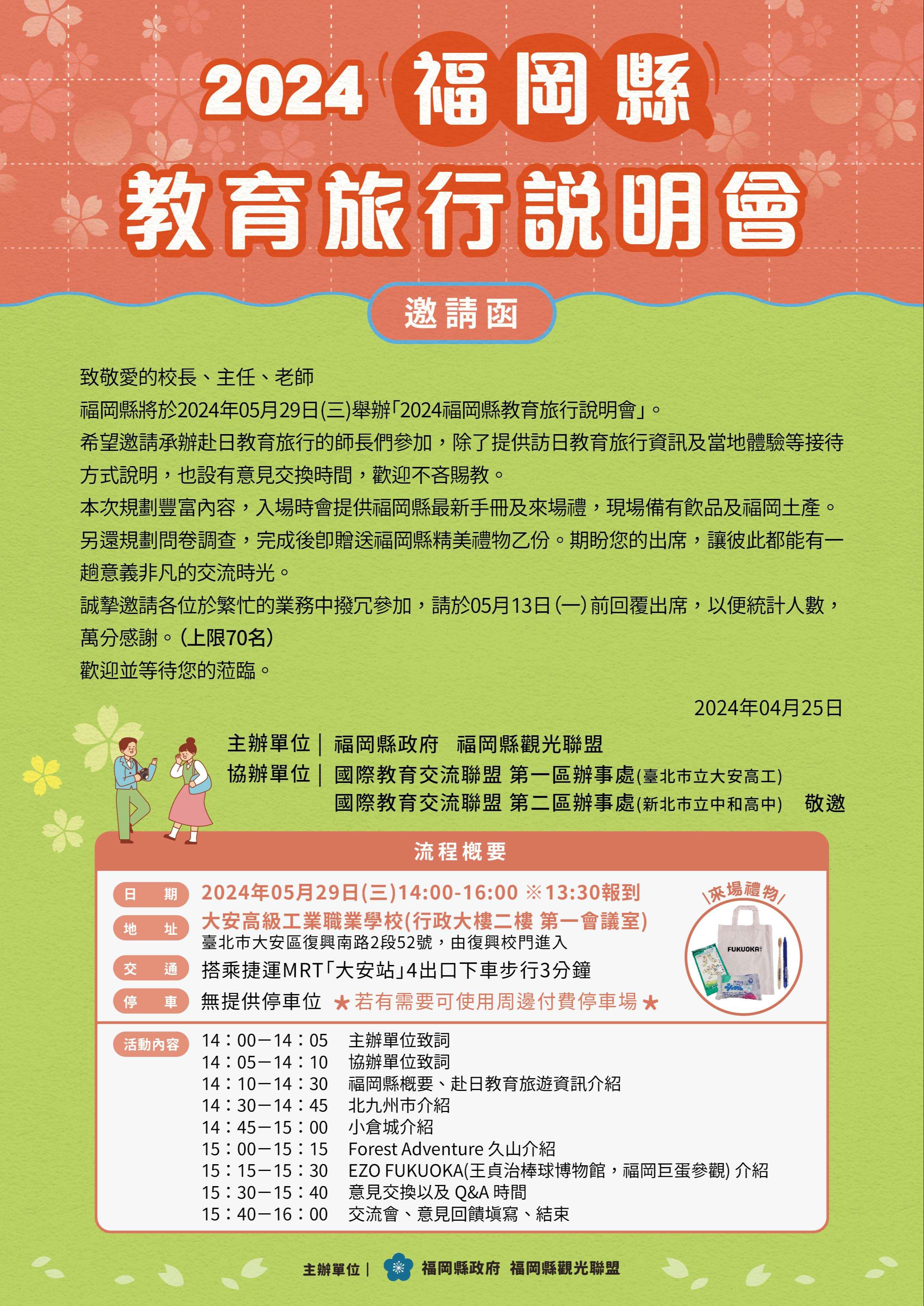 (二)地點:大安高級工業職業學校 行政大樓第一會議室(台北市大安區復興南路二段52號)(恕無法提供停車位)