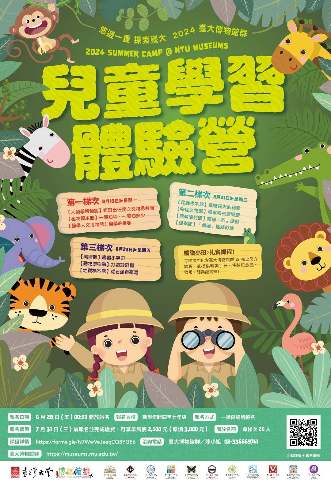 一、「悠遊一夏 探索臺大:2024臺大博物館群兒童學習體驗營」相關資訊如下: