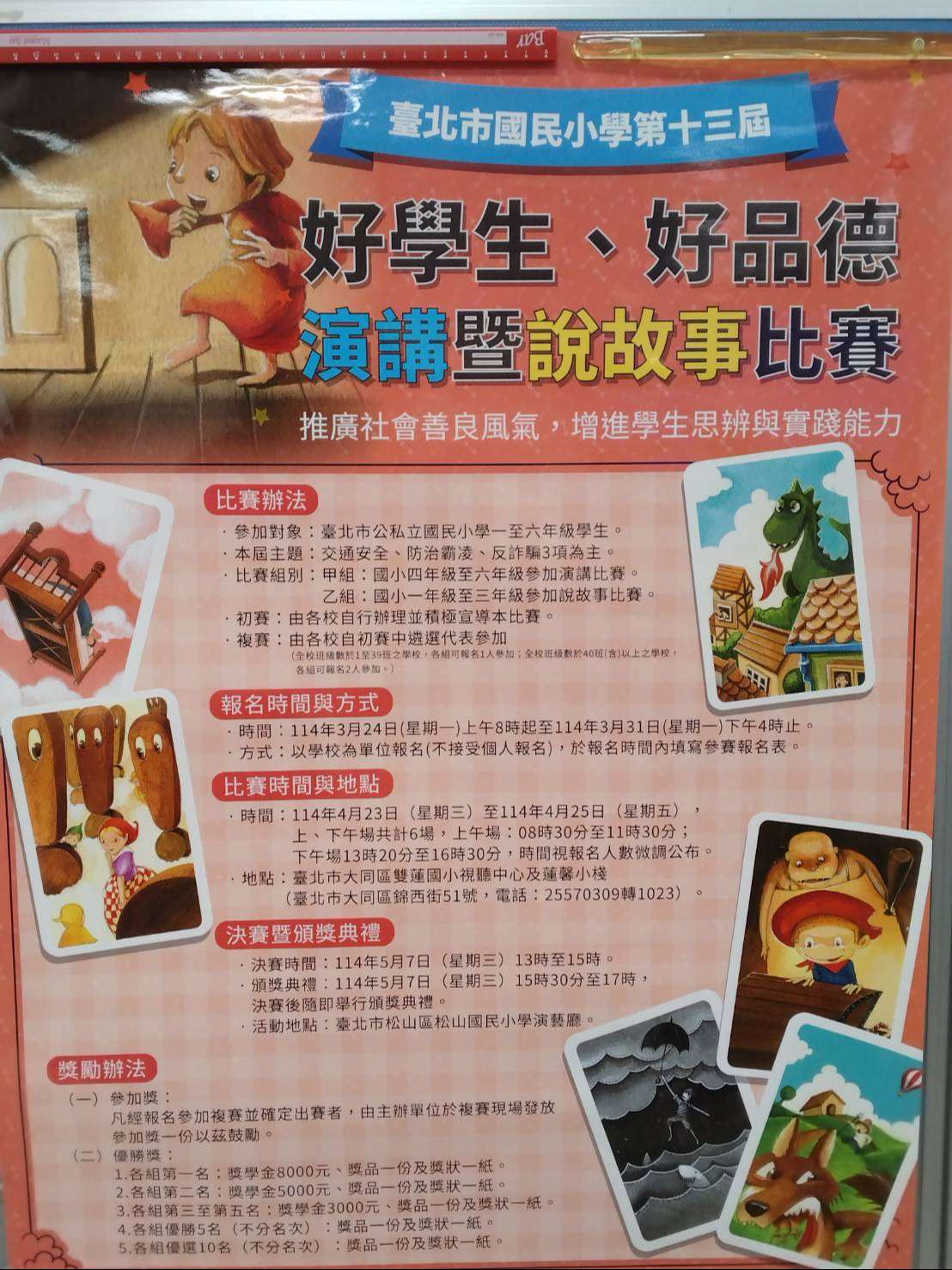 比賽相關資訊請參閱海報,歡迎有興趣的一到六年級學生參與。
