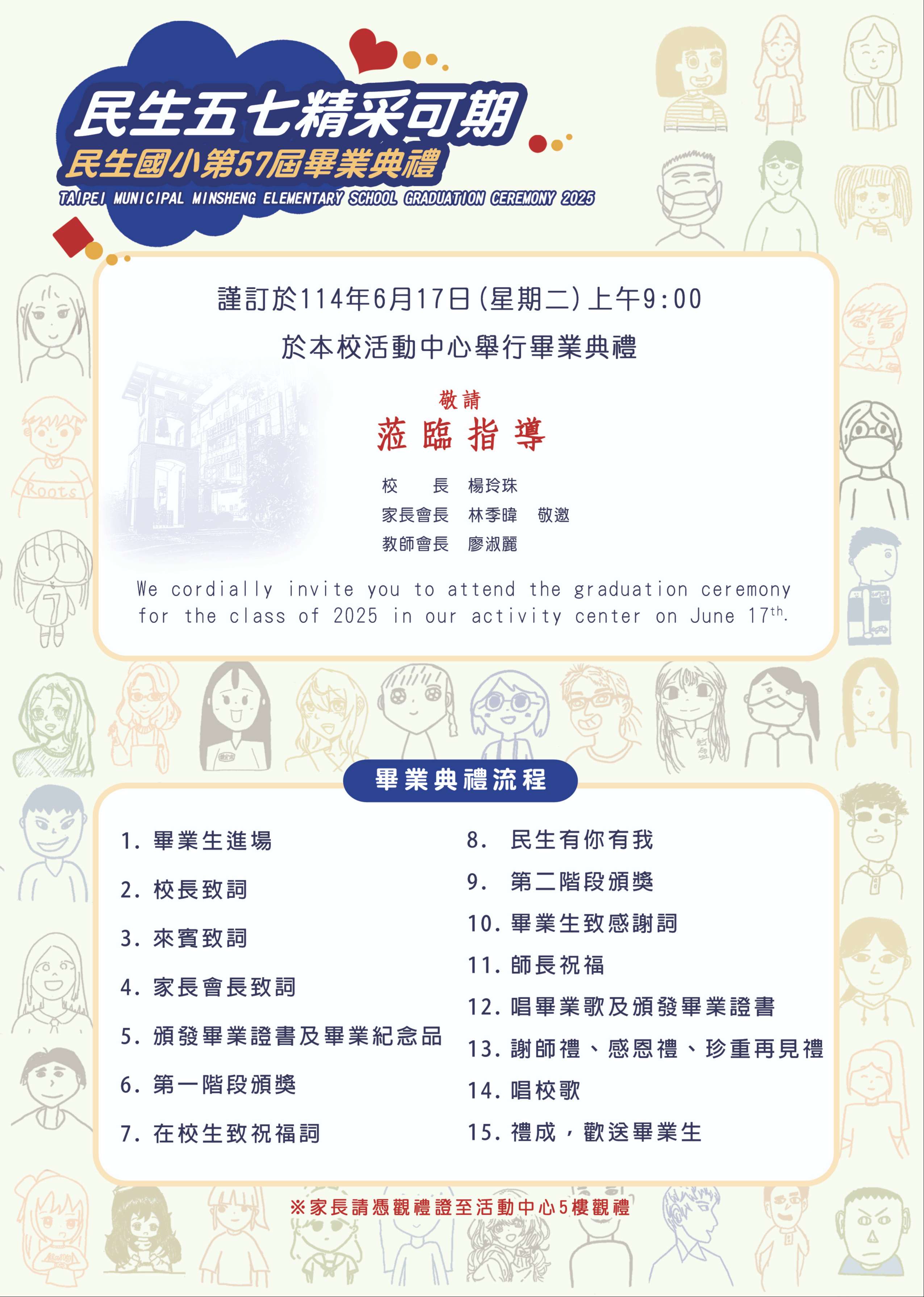 典禮直播: 請點選學校網站首頁右邊 民生youtube 頻道