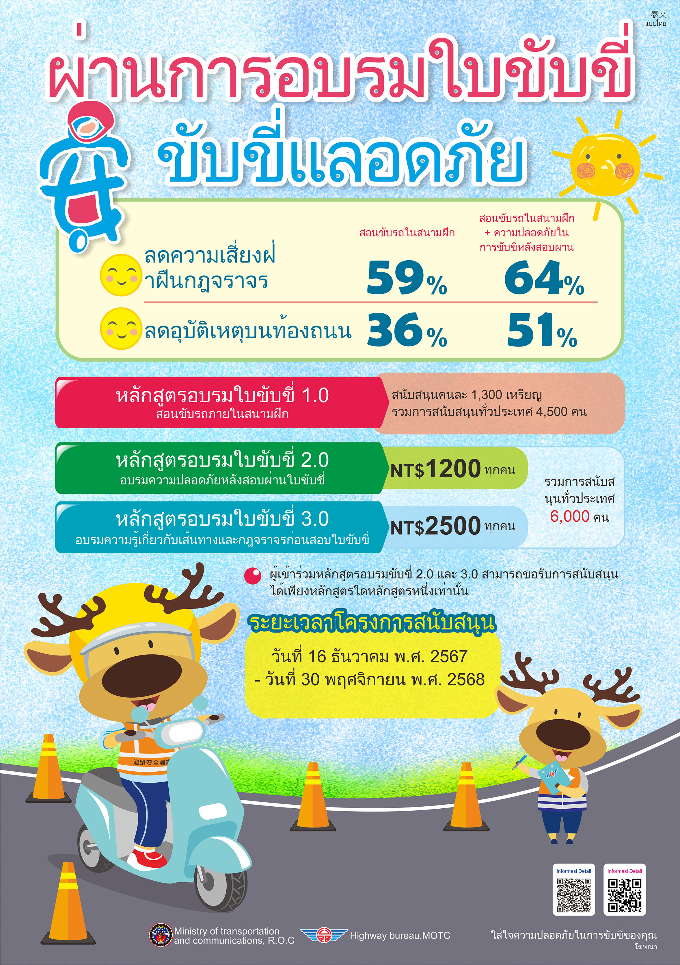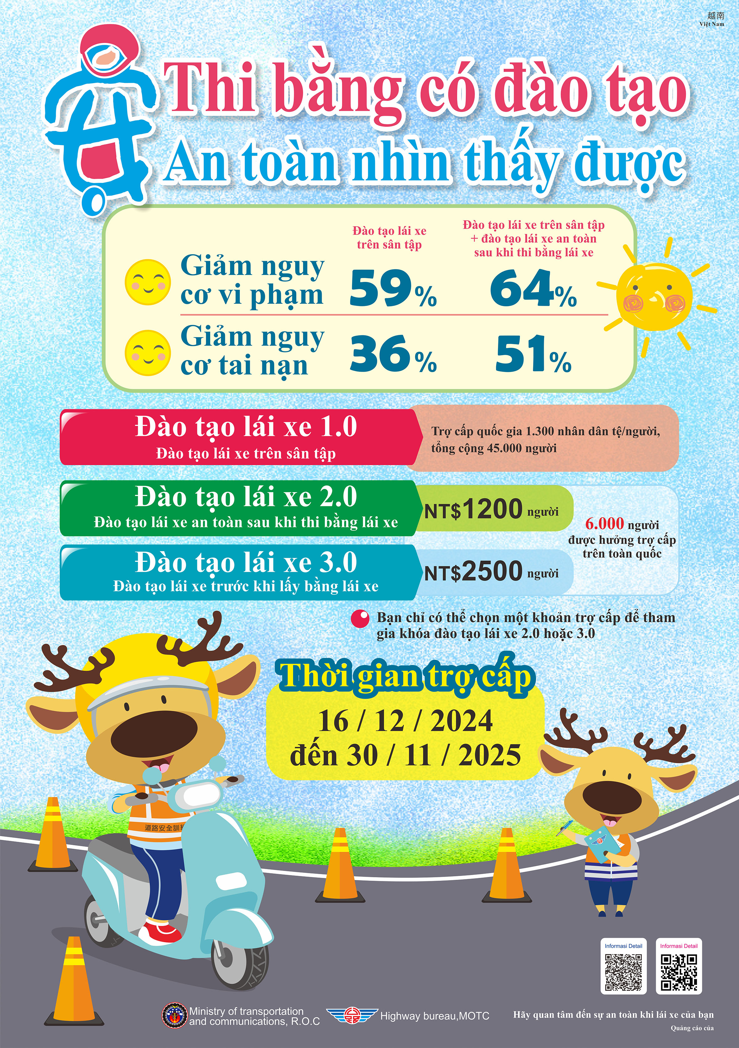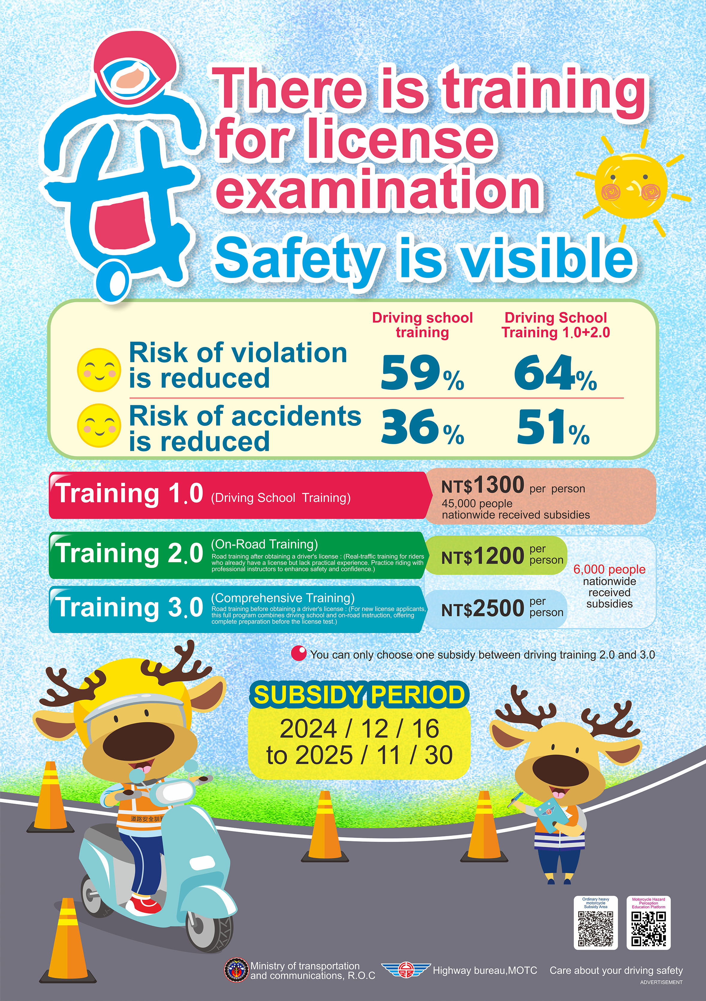 2.為強化學生機車安全駕駛觀念,降低交通意外之風險,請貴校運用各種管道加強宣導,另請鼓勵外籍生參加機車駕訓班,建立正確駕駛觀念與培養道路駕駛能力。
