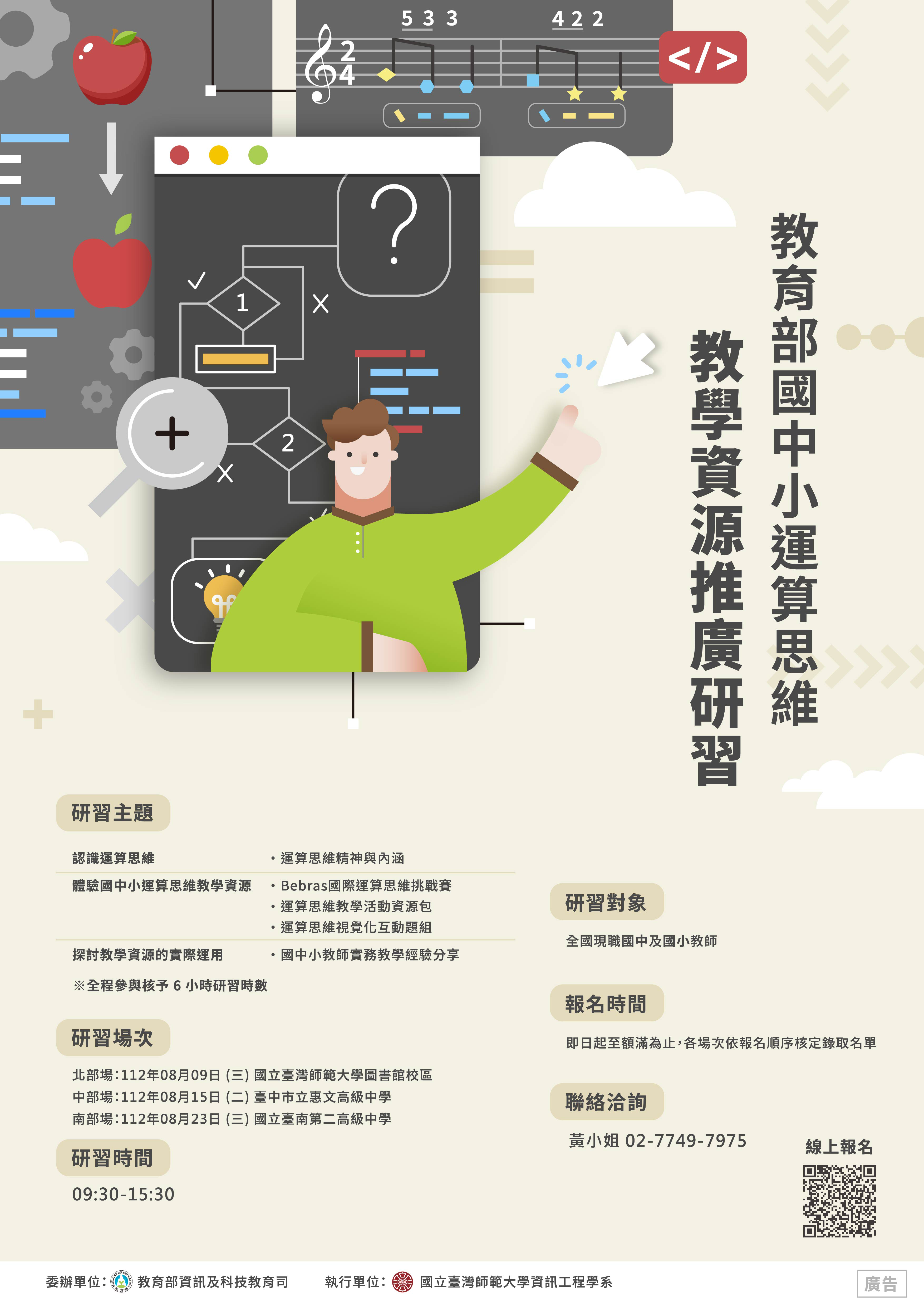 檢附旨揭研習實施計畫及宣傳海報各1份,倘有疑義,請逕 洽國立臺灣師範大學黃小姐(聯絡電話:02-7749- 7975)。