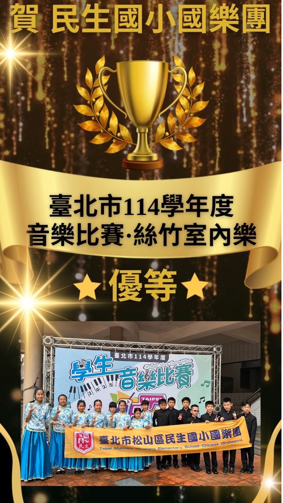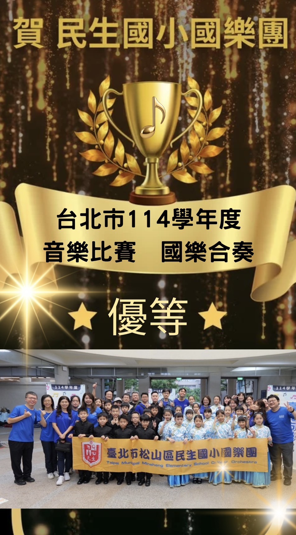 國樂團:202陳柏翰、王詩予、205巫懿恩、302林子瑄、307王柏勛、吳祐葵、葉岱穎、308劉乙承、朱昱叡、許露恩、401張嬡妮、402黃千芷、405黃定濰、406陳瑋彤、黃尹湘、407陳柏碩、501黃軍墘、周均霖、502陳維維、503黃冠騰、504蘇悅喬、505凌珣睿、506王裕文、604黃艾妡、605楊均婕、608徐依庭、609陳芃語